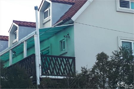사고가 발생한 강릉의 한 펜션에서 가스보일러 배출구가 건물 밖으로 빠져 나와있다. (사진=유선희 기자)