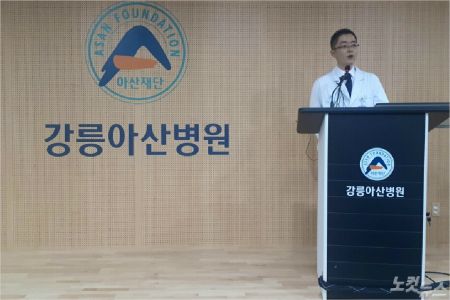 강릉아산병원 강희동 권역응급의료센터장이 기자회견을 하고 있다. (사진=유선희 기자)