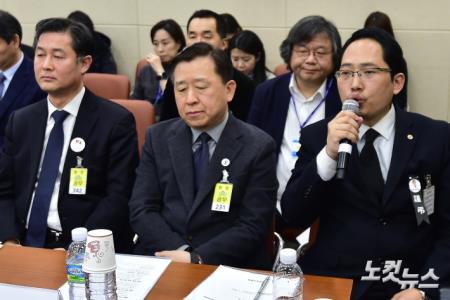 권준수 대한신경정신의학회 이사장, 신호철 강북삼성병원장, 최대집 대한의사협회장(좌측부터)이 9일 국회에서 강북삼성병원 임세원 교수 사망사건과 관련한 현안보고를 위해 열린 보건복지위원회 전체회의에 출석하고 있다.