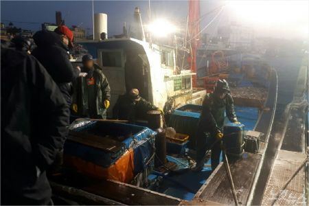 지난 18일 찾은 강릉 주문진항은 이른 아침부터 위판장에 모인 어부들과 상인, 수협 직원들로 북적였다. 항구로 들어오는 오징어잡이 배에는 오징어가 가득 담겨 있었다.