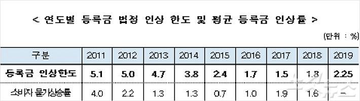 교육부가 올해 등록금 인상 법정 한도를 2.25%로 과거보다 다소 올렸지만, 등록금을 올려 받았다가 정부 재정지원 사업에서 자칫 불이익을 받을 수 있어서다.