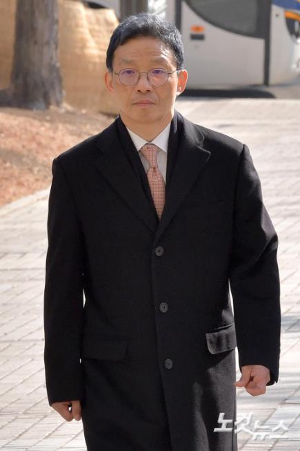 서지현 검사를 성추행한 뒤 인사보복을 한 혐의로 기소된 안태근 전 법무부 검찰국장이 23일 오후 서울 서초구 서울중앙지법에서 열린 직권남용권리행사방해 선고 공판에 출석하고 있다.