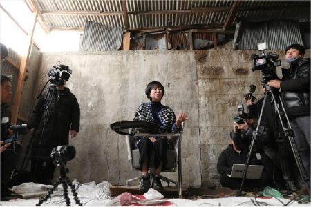 목포 근대역사문화공간 내 부동산 투기 의혹을 받는 무소속 손혜원 의원이 23일 오후 목포 투기 의혹 현장에서 기자회견을 하고 있다. 연합뉴스