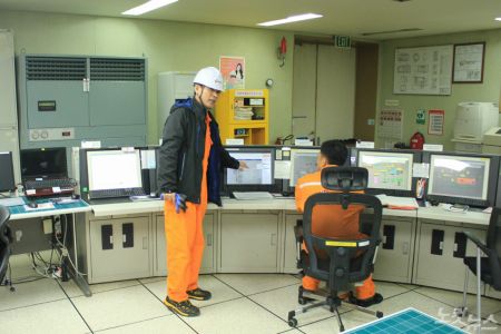 한국석유공사 직원들이 가스전 설비를 둘러보고 있다. (사진=이상록 기자)