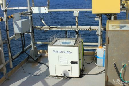 동해가스전에 설치된 풍황계측기 라이다. 해상풍력발전에 필요한 풍향, 풍속 등의 자료를 1년 동안 수집한다. (사진=이상록 기자)