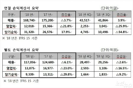 매출과 영업이익은 2017년(구 회계기준) 대비 각각 3.7%, 21.8% 감소했다. 순이익은 SK하이닉스의 역대 최고 실적에 따른 지분법 이익 영향으로 전년 대비 17.9% 증가했다.