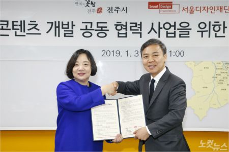 전주시와 서울디자인재단이 콘텐츠 개발 공동협력을 위한 협약을 체결했다(사진=전주시청 제공)