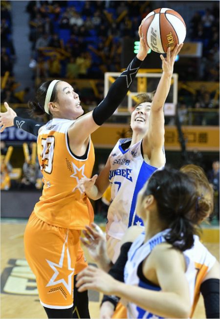 KB는 상대 노장 임영희에게 미들슛을 맞아 5점 차로 뒤졌지만 포기하지 않았다. 박지수가 종료 1분 전 빌링스를 5반칙으로 물러나게 하면서 얻은 자유투 1개를 넣었고, 이어진 공격에서 종료 53초 전 염윤아가 통렬한 3점포로 1점 차까지 추격했다.