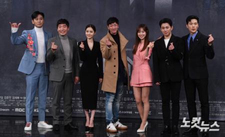 11일 오후 서울 마포구 MBC사옥에서 열린 월화드라마 '아이템' 제작발표회 참석자들이 포토타임을 갖고 있다. 왼쪽부터 배우 주지훈, 박원상, 김유리, 김성욱PD, 진세연, 오승훈, 김강우.