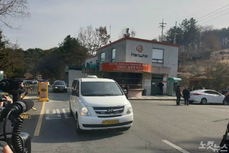 14일 폭발사고로 숨진 노동자 시신을 실은 운구차량이 한화 대전공장을 벗어나고 있다. (사진=인상준 기자)
