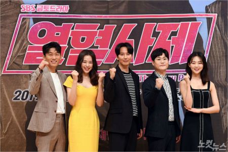 배우 고준(왼쪽부터), 이하늬, 김남길, 김성균, 금새록이 15일 오후 서울 목동 SBS에서 열린 금토드라마 '열혈사제' 제작발표회에 참석해 포토타임을 갖고 있다. (사진=황진환 기자)