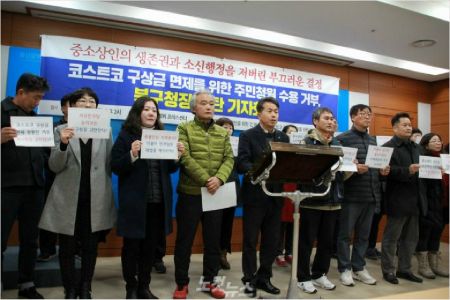 코스트코 구상금 청산을 위한 을들의 연대는 지난해 11월 19일 구상금 면제에 동의한 주민 1만1257명의 청원서를 북구의회에 전달했다.(사진 = 반웅규 기자)