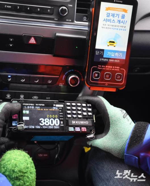 19일 서울 마포구 난지천 공원 주차장에서 미터기를 교체하고 있다. 지난 16일 오전 4시부터 서울 시내 택시 기본요금이 3,000원에서 3,800원으로 올랐다. 서울시는 새요금체계가 반영된 미터기 프로그램 교체를 이날부터 28일까지 순차적으로 진행 한다고 밝혔다.