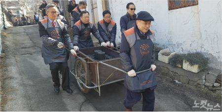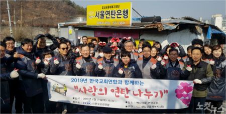 한국교회연합이 서울 중계동 백사마을을 찾아 연탄 3만장을 전달했다.