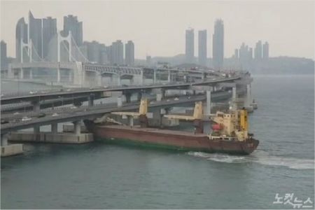 요트를 들이받은 씨그랜드호는 이후 방향을 틀어 광안대교로 돌진해 하판 10~11번 사이 교각과 충돌했다.