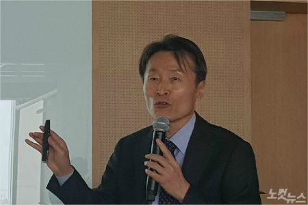 하림그룹의 전북 익산시대를 설명하고 있는 하림지주 문경민 전무.(사진=이균형 기자)