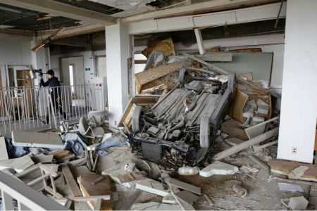 동일본대지진의 흔적…고교 교정 안에 밀려든 자동차 (사진=연합뉴스)