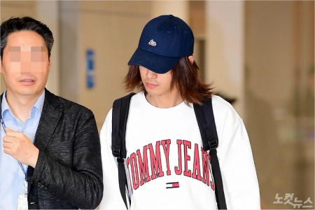 성관계 영상을 불법촬영해 가수 승리 등 연예인 지인들에게 불법으로 유포한 혐의를 받고 있는 가수 정준영이 12일 예능 프로그램 촬영을 중단한 뒤 인천공항을 통해 귀국하고 있다. (사진=박종민 기자/자료사진)