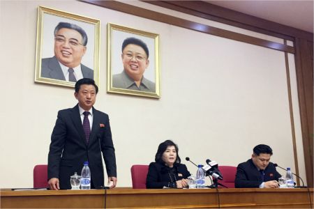 지난 15일 북한 평양에서 최선희(가운데) 북한 외무성 부상이 외신 기자, 외국 외교관들을 대상으로 회견을 하고 있는 모습.(사진=연합뉴스)