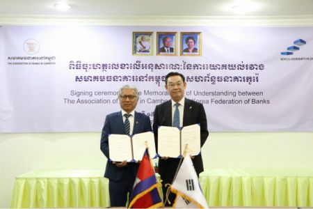 문재인 대통령의 동남아 3국 순방에 경제사절단으로 동행한 김태영 은행연합회장은 회장 캄보디아 은행협회를 지난 15일 방문해 인 찬니 회장과 이같이 협약을 체결했다.