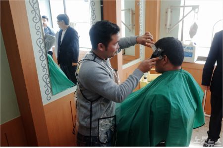 이날 첫 고객인 쇼진도(42.중국) 씨는 "무료로 머리를 자를 수 있어 감사하다"며 "잘 온 것 같다"고 웃으며 말했다. 그는 중국 청도에서 한국으로 건너 와 4년째 건설현장에서 일하고 있다.