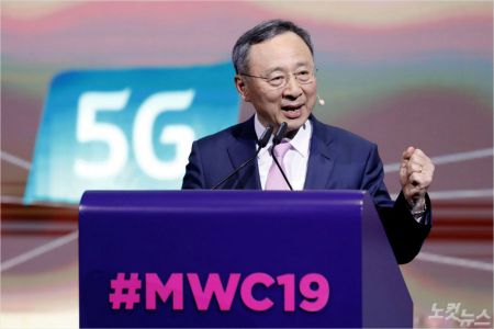 황창규 KT 회장이 지난 2월 25일(현지시간) 스페인 바르셀로나 피아그란비아에서 열린 MWC19(모바일 월드 콩그레스) 에서 기조연설을 하고 있다. (사진=노컷뉴스DB)