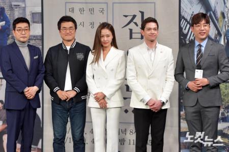 배우 손현주(왼쪽부터), 작가 최태성, 배우 홍수현, 방송인 다니엘 린더만, 아나운서 허일후가 25일 오후 서울 마포구 상암동 MBC사옥에서 열린 다큐멘터리 특집 '백년만의 귀향, 집으로' 제작발표회에서 포즈를 취하고 있다. 백 년 만의 귀향, 집으로는 세계에 뿔뿔이 흩어져 있는 독립운동가 후손을 직접 찾아 만나는 프로그램이다. 총 4부작으로 방송된다.