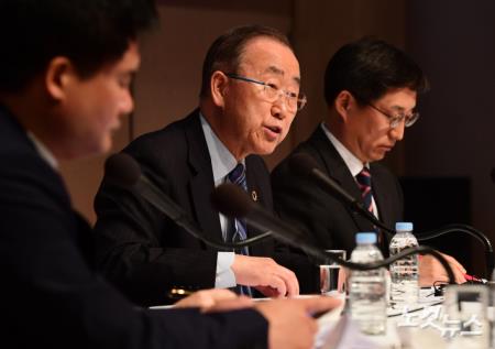 반기문 전 유엔 사무총장이 26일 오후 서울 중구 한국프레스센터에서 열린 관훈토론회에 참석해 발언하고 있다.