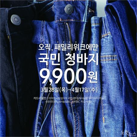이마트는 1년에 단 한 번 선보이는 연중 최대 규모의 의류 할인 행사인 '데이즈 패밀리위크'를 통해 성인 남녀와 유아용 청바지, 티셔츠를 9900원에 판매한다.