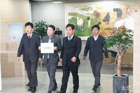 송행수(대전 중구), 강래구(대전 동구), 박종래(대전 대덕구)지역위원장은 이날 화환 명판 은닉사건 수사의뢰서를 대전지검 민원실에 제출했다.