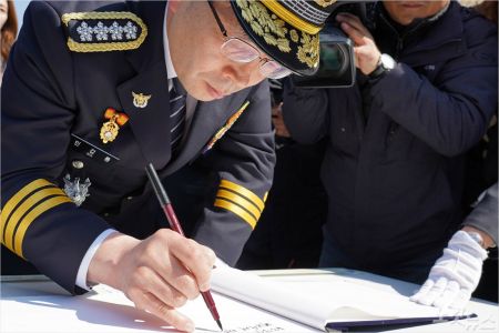 방명록에 "아픈 역사로 안타깝게 희생되신 분들의 영전에 깊은 애도를 표하며 유가족분들께 진심으로 위로의 말씀을 올립니다. 이제는 과거의 아픔을 온전히 치유하고 새로운 미래로 나아가기를 기원합니다” 라고 긴 글을 남기며 유가족에 위로의 말을 전했다.