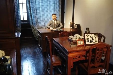 상하이 임시정부 청사 유적지 안에는 집무실에서 업무를 보고 있는 김구 선생의 모습이 복원 돼 있다. (사진=김세준 기자)