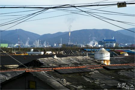 도성마을 슬레이트 지붕 위로 보이는 여수산단(사진=박성태 작가)
