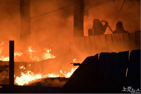 강원 고성에서 발생한 산불을 소방대원이 진하고 있다 (사진=박종민기자)