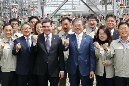 투르크메니스탄을 국빈 방문 중인 문재인 대통령은 18일 수도 아시가바트에서 북서쪽으로 500km 떨어진 투르크멘바시에 도착해 한국 기업들이 참여해 건설한 '키얀리 가스화학 플랜트' 현장을 방문해 양국 기업 대표들과 근로자들을 격려했다.