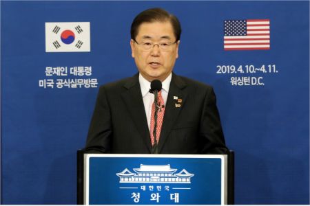 정의용 국가안보실장이 11일 오후(현지시간) 워싱턴 백악관 인근 호텔에 마련된 중앙기자실에서 한미 정상회담에 대해 브리핑을 하고 있다. (자료사진=연합뉴스)