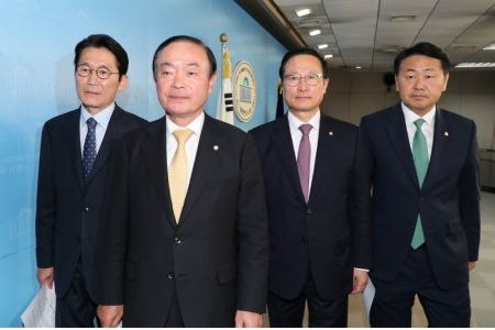 이날 오후 국회에서 기자회견을 연 이들은 "지난 3월 17일 4당 정치개혁특별위원회 간사들 간의 합의 사항을 바탕으로 미세 조정한 관련법 개정안을 마련해 신속 처리 안건으로 지정한다"며 선거제 개편안 패스트트랙 상정을 추진한다고 말했다.
