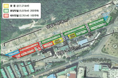 1인당 제공되는 텃밭은 20㎡(7평)이며, 분양신청은 5월초에 접수를 받아 분양은 기존 작물재배가 끝나는 대로 공사를 완료하고 6월초에 실시한다.