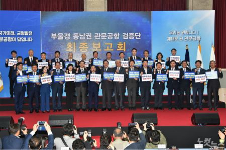 이들 시도지사는 "지금까지 정부의 세 차례 걸친 연구 결과는 김해공항 확장으로는 결코 동남권관문공항의 역할을 할 수 없다는 결론을 일관되게 보여줬다. 검증단의 검증 결과는 지금까지 모든 연구 결과와 역시 다르지 않았다"며 "국민의 생명과 안전을 위협하는 잘못된 정책은 바로 잡아야 한다. 국무총리실의 최종 결정을 통해 문재인 대통령의 공약인 24시간 안전한 동남권 관문공항을 조속히 건설해 달라"고 강조했다.