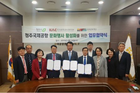 공항공사 청주지사는 24일 청주시, 충북문화재단과 '청주국제공항 문화행사 활성화를 위한 업무협약'을 체결했다.