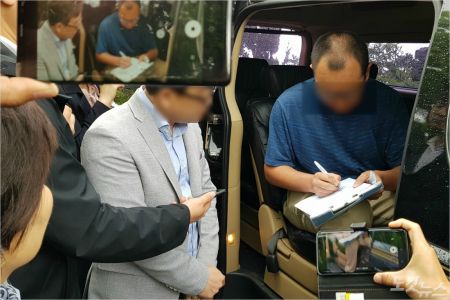 운전면허 도로주행을 위해 불법숙박업소를 나서려다 단속에 적발된 중국 관광객.