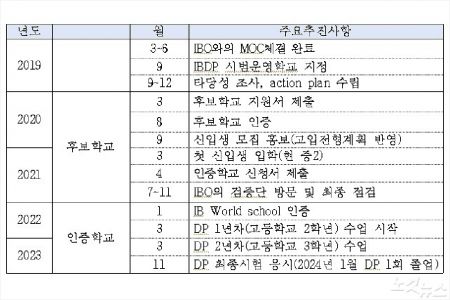 현재 중학교 2학년이 적용대상인 'IB 한국어 DP'는 이들 학생이 고등학교 2학년이 되는 2022년부터 본격 운영된다.