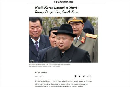 뉴욕타임즈와 CNN, 폭스뉴스 등 미국 주요언론들도 잇따라 북한의 단거리 발사체 발사 소식을 전했다.