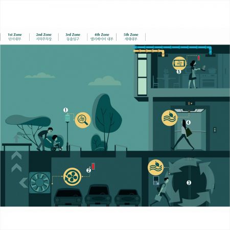 대우건설이 지난 2017년 개발한 5ZCS 는 푸르지오 단지를 단지입구와 지하주차장, 동 출입구, 엘리베이터, 세대내부 등 5개의 Zone으로 구분해 Zone별로 미세먼지의 오염도에 대한 알림서비스를 제공하고 미세먼지를 차단하는 시스템이다.