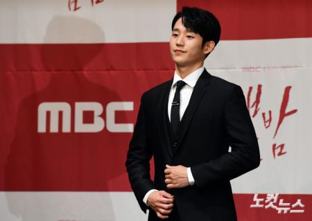 배우 정해인이 20일 오후 서울 구로구 라마다서울신도림호텔에서 열린 MBC 수목드라마 '봄밤' 제작발표회에 참석해 포토타임을 갖고 있다.