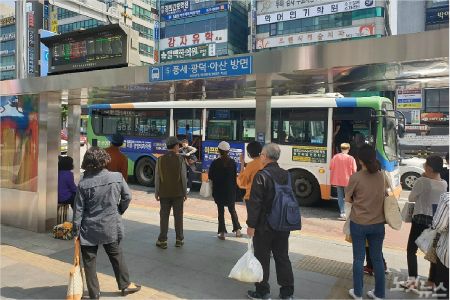충남버스노동조합이 회사측과 임금현상을 벌이는 가운데 사진은 지난 14일 전면파업을 하루 앞두고 천안터미널 앞에서 시민들이 버스를 기다리고 있는 모습. (사진=자료사진)
