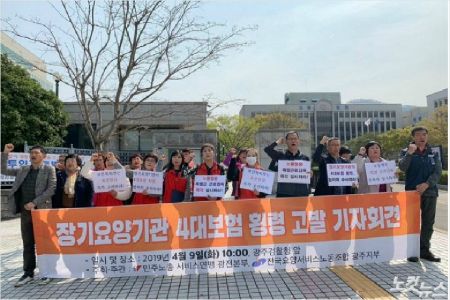 지난 4월 요양보호사들이 소속된 전국요양서비스노동조합 광주지부가 국민연금 등 4대 보험료를 횡령한 장기요양병원을 검찰에 고발했다(사진=전국요양서비스노조 광주지부 제공)