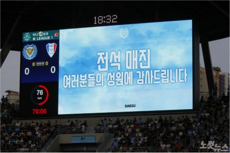전석 매진을 알리는 전광판. (사진=대구FC 제공)