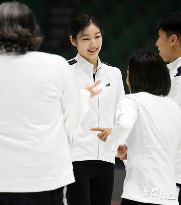 전 피겨선수 김연아가 4일 오후 서울 송파구 올림픽공원 체조경기장 내 특설 아이스링크에서 열린 올댓스케이트 2019 아이스쇼 리허설무대를 마치고 미소를 짓고 있다.