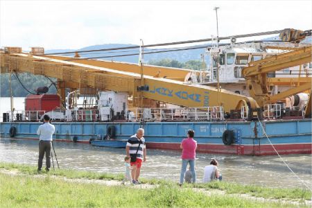 ◆ 김광일> 근처까지 오다가 일단은 멈춰섰습니다. 어제 새벽에 다뉴브강 상류 코마롬이라는 도시에 정박해 있다가 어제 새벽에 출발을 했었죠. 그런데 침몰 현장을 향해 9시간 30분가량을 달려오다가 5km 남겨두고 멈춰섰습니다. 멈춘 곳이 여기 부다페스트 시내였는데요. 저희가 가보니까 선원들도 크레인 운반선을 강변에다 밧줄로 묶고 모두 밖으로 내려왔습니다.